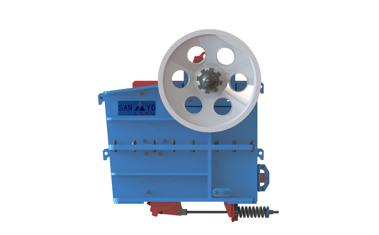 廣義上來(lái)講,液壓顎式破碎機(jī)是顎式破碎機(jī)中的一種,所以,在外觀上,兩者大同小異,不在這一行的話(huà),基本很難區(qū)分(辨別)。液壓顎式破碎機(jī)的組成部分除了有和普通顎式破碎機(jī)一樣的動(dòng)定顎板,主軸,軸承,側(cè)板,動(dòng)案板之外,最主要的增加了對(duì)動(dòng)顎板有保護(hù)液壓缸系統(tǒng)和肘板。下面,就是sanyyo生產(chǎn)的HV歐版液壓顎式破碎機(jī)及結(jié)構(gòu)剖析圖: